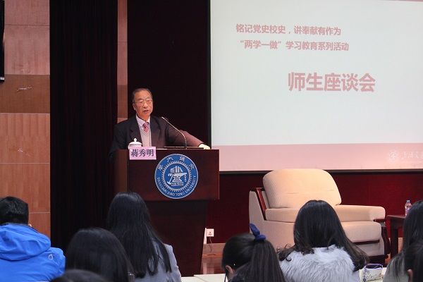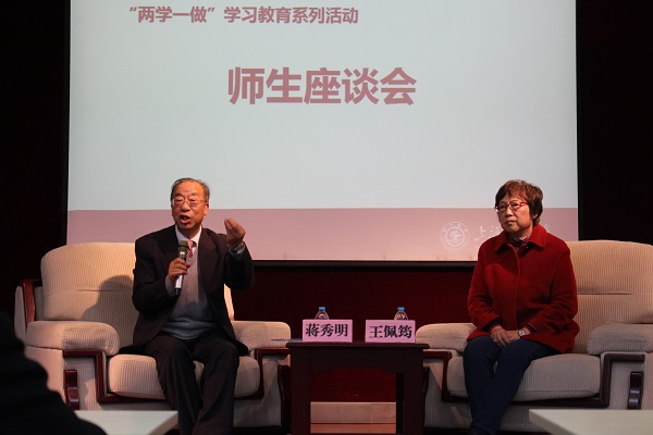 在与两位老师的师生座谈会中,同学们积极提问,踊跃交流。两位老师对同学们提出的“如何组织同学们更好地学习党中央的各项会议精神”,“如何时刻保持初心”,“求学过程中的难忘经历”等问题深入探讨,悉心为同学们进行解答,使在场师生对总书记七一讲话精神和“学在交大”有了更直观的认识。