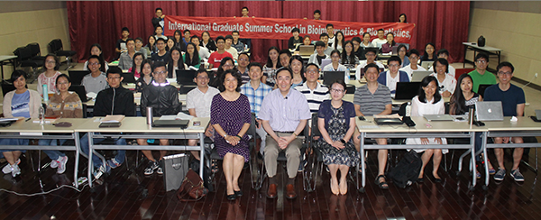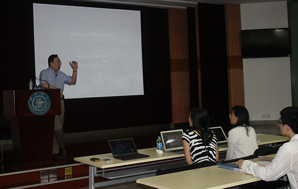 本次暑期班的授课团队由美国范德堡大学知名统计学专家、350vip8888新葡的京集团访问讲席教授石瑜及其助手刘琪博士、陈晓倩博士和我校350vip8888新葡的京集团生物信息学与生物统计学系吕晖、赵一雷、陈海峰、韦朝春、李婧、王卓、徐沁、石婷、吴茂英等多位教师组成。课程系统地介绍了二代测序、生物结构、药物设计、酶分子机制、GWAS、生物网络、转化医学与生物大数据等相关分析方法及最新研究进展。生物统计学课程从真实科研与应用案例出发,理论教学结合上机练习,深入浅出地介绍了生物统计学中实验设计、参数检验、非参检验、样本推断、线性与非线性回归、生存分析、倾向得分、GEE模型、MCMC、lasso等内容,同时也介绍了针对大数据的统计新模型。