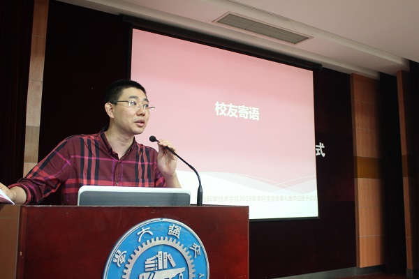吴方为毕业生们送上祝福并寄语。作为一名经历丰富的校友,他结合自己毕业之后的工作和学习历程,建议同学们不断倾听自己内心的呼唤,不断探寻自己内心的真我。