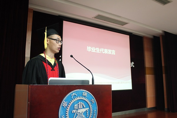 毕业生代表罗人和回顾了过去四年的大学生活,对生命科学的热爱之情溢于言表,对未来实现青春梦想充满欣喜。罗人和代表全体同学表达了对老师、对家长、对同学的感谢。