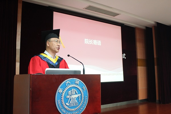 邓子新代表学院向2016届本科毕业生表示衷心祝贺,并对培育他们的老师们表达了诚挚的感谢。邓子新与毕业生们回忆了过去四年中同学们的成长点滴,他与毕业生们分享了自己的四个礼物:传承仰望、传承感恩、传承思考、传承交通。他希望同学们用仰望去点亮理想,用思考去探索未知,用感恩去温暖世道,用交通去引领时代,把握当下,创造未来。