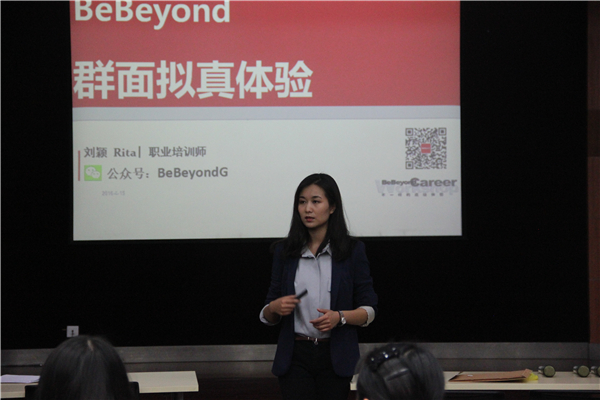 活动采用模拟面试的方式,是为了增进同学们对求职面试的系统全面的了解,培养同学们在面试中的应试能力,提高面试时的心理素质。活动现场还原了500强群面场景,采取开放式面试的形式,每组配有一名HR观察同学们的表现,并在面试结束后对大家的表现进行评价。现场增设了观众席,为其他同学提供了在台下观摩、学习的机会。本次模拟面试严格按照正规公司面试的形式进行,全真的面试现场让同学们很快进入状态,达到了考察的效果和目的。