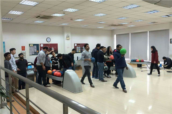 活动的最后,中外学生相约光彪楼保龄球馆,一起打球,玩得酣畅淋漓。