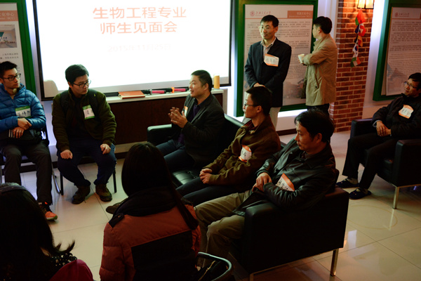 11月25日晚,工科试验班第一次班会暨师生见面会在教工之家举行。班主任程海荣主持会议,同学做简短交流相互认识之后,通过自荐的形式竞选形成了班委。同学们就就业、专业课程设置、相近专业认知以及研究工作开展等问题提问。就业问题方面,钟建江老师提到,生物工程是一门多学科交叉的专业,横向发展和向上发展均可,选择很多,方向广泛,同学们应该坚信交大的学生不用愁出路。关于专业课程,陈峰老师解释,本科期间的培养重点在于通识教育,着重于学生人格、思维、能力养成。