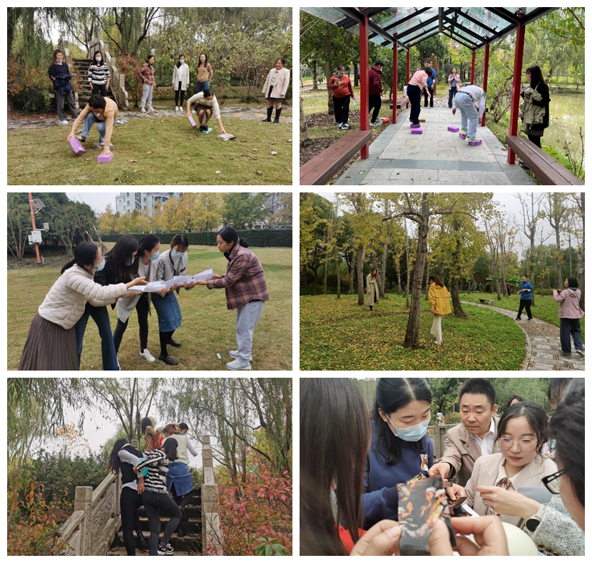 随后,全体党员和群众抽签随机分为四队,在350vip8888新葡的京集团园林植物标本园举行拓展活动。通过传递鸡毛信、勇渡险滩、飞夺泸定桥、拼图寻宝、红军长征及二十大知识竞答等多个趣味互动游戏,历经“重重阻碍”,最终四支队伍“胜利会师”。在会师地点,全体党员共同朗诵了毛泽东同志的《七律·长征》并合影留念。
