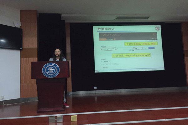 仲汇慧具有丰富的数据库软件使用及教学经验,她对数据库软件进行了简单的介绍和分析,告诉同学们在科研的过程中数据库软件是一个不可缺少的信息获取工具。她详细演示了数据库软件的使用方法以及如何用于检索文献资料等,同学们认真听讲并记录。