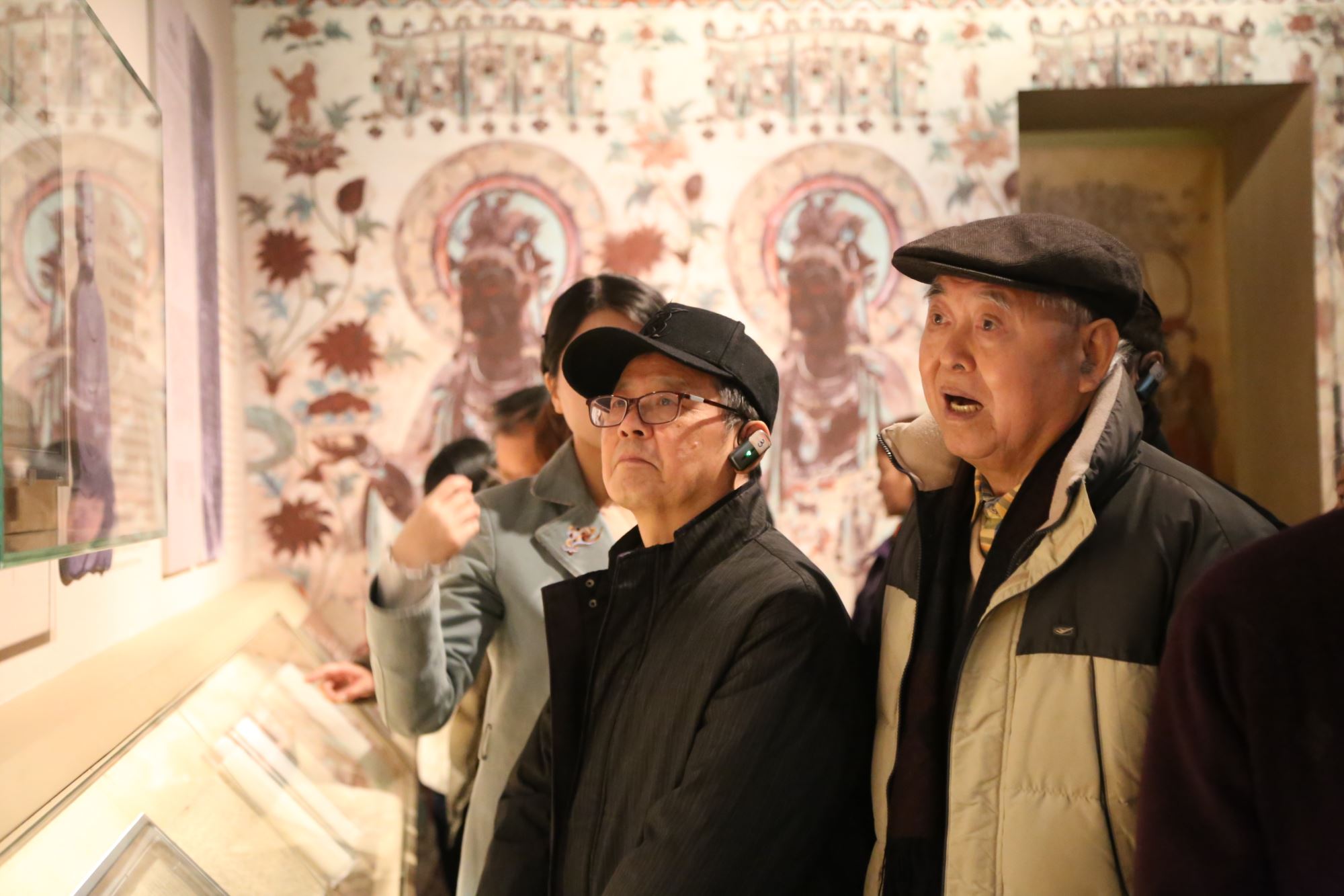 老同志们在精美的展品前驻足凝视,透过展品品味敦煌文化所展现出的坚韧、包容和创新精神。从丝路贸易带来的多元融合,到民间艺人、僧侣画师世代坚守,大家深刻领会到守护文化遗产、传承民族精神的重责。本次活动也是学院退休教职工党支部边看边谈时代变迁系列特色活动之一。