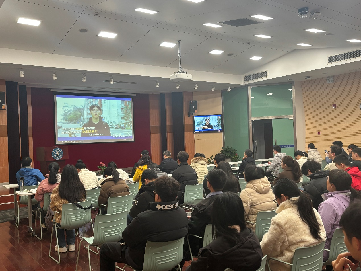 接着,与会师生集体观看消防安全公开课。视频采取课堂教育、模拟实验、案例分析、实操实练等形式,重点讲授高校易发生火灾场所火灾风险防范、火场疏散逃生方法、常用灭火设施使用和初起火灾处置方法等消防安全知识,为实验室安全员提供了科学、实用的安全管理指导。课程中还展现了人形机器人、机器狗等人工智能消防设施,使学习消防安全知识变得生动有趣。