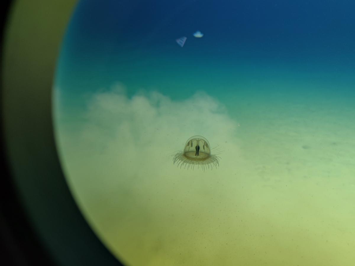 Researchers discover a unique jellyfish in the deepest part of the Yap Trench during this expedition on Oct 24, 2021. [Photo provided to chinadaily.com.cn]