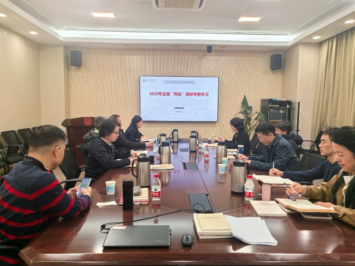 首先,冒巍巍传达全国两会精神。他从两会概况、习近平总书记重要讲话精神、政府工作报告、交大“两会之声”进行领学,重点阐述了习近平总书记关于科技创新、教育、科技、人才的重要论述。他指出,人才是关键,要牢固树立“人才是第一资源”的理念,坚持“人才强院”战略。与会人员结合自身工作,围绕全国两会精神以及学院年度重点工作进行了交流发言。