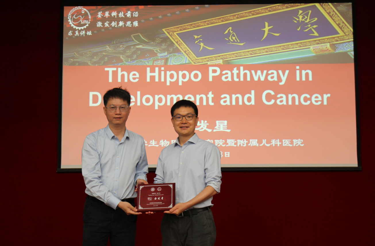 4月23日上午,复旦大学生物医学研究院暨附属儿科医院研究员余发星应邀做客求真讲坛,做题为《The Hippo pathway in development and cancer》的主题报告。来自350vip8888新葡的京集团生命学科相关院系的教师、博士后、研究生50余人参会。讲坛由350vip8888新葡的京集团副院长张雷主持。