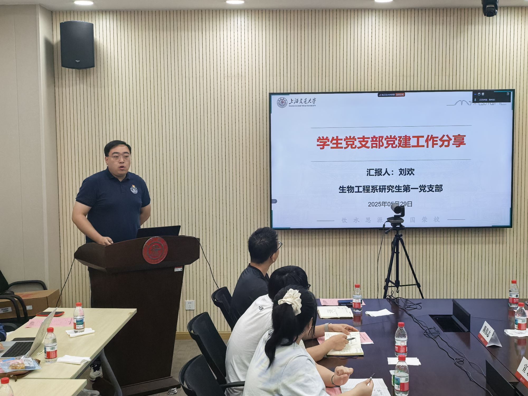 生物工程系研究生第一党支部原书记刘欢作学生党支部建设与管理经验分享。他从自身工作实际出发,介绍了党支部在纪律规范、工作标准、年度计划制定等方面的有效做法,并分享了支部“四大特色提质基础党建”的一系列活动,为各支部提供了丰富且宝贵的经验。