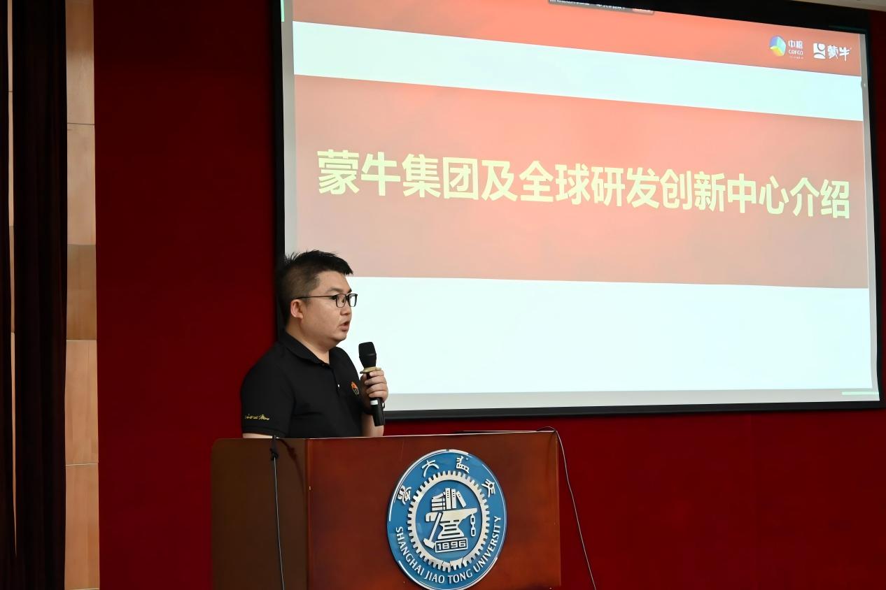 蒙牛集团全球研发创新中心党支部副书记史玉东作集团介绍。他详细介绍了蒙牛集团的发展历程、全球研发、人才体系、业务未来等内容,并重点介绍了蒙牛集团党委系统打造“乳香伴着党旗飘”的党建特色品牌以及全球研发创新中心党支部“学思想、强业务”的工作理念。