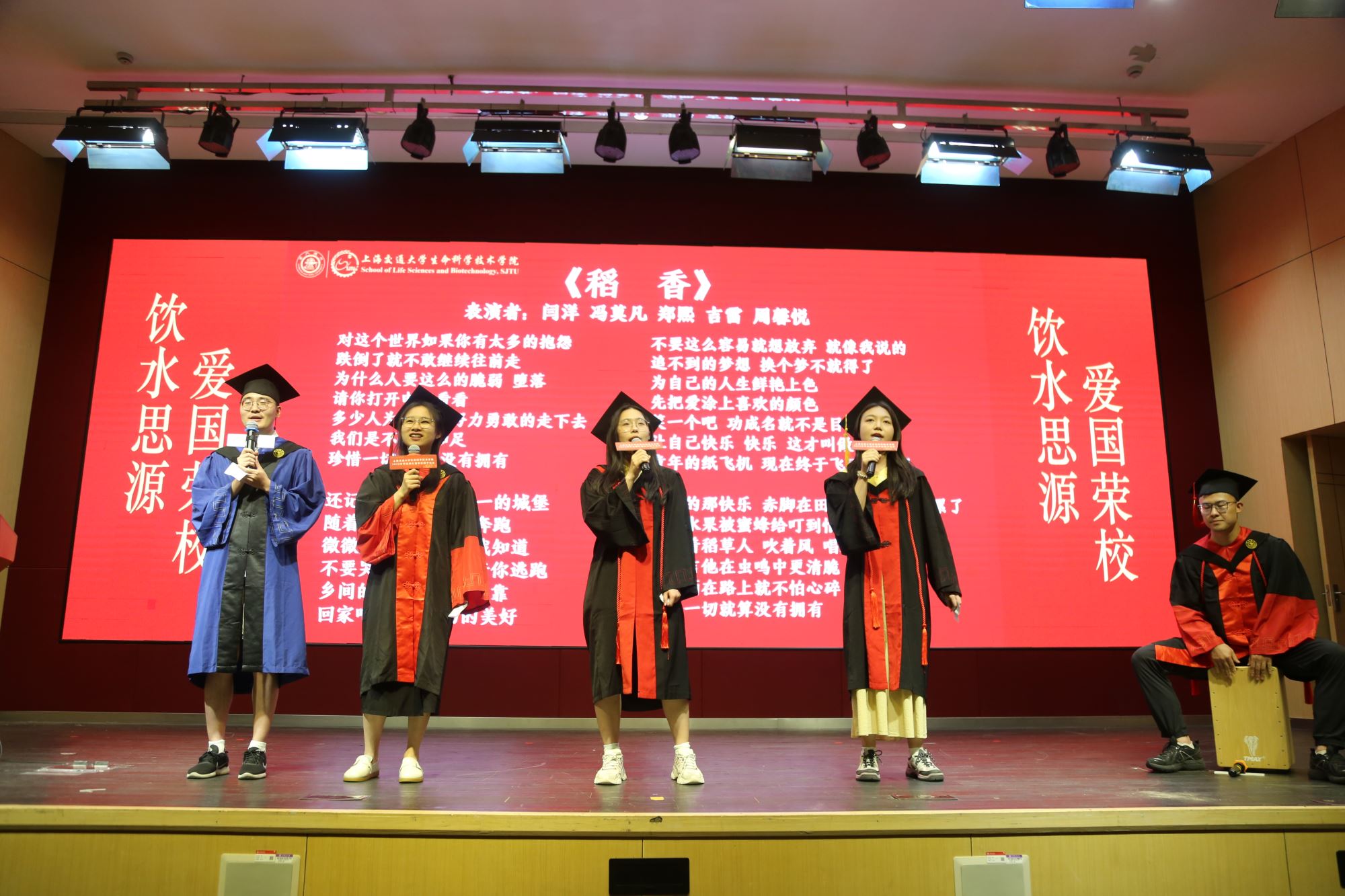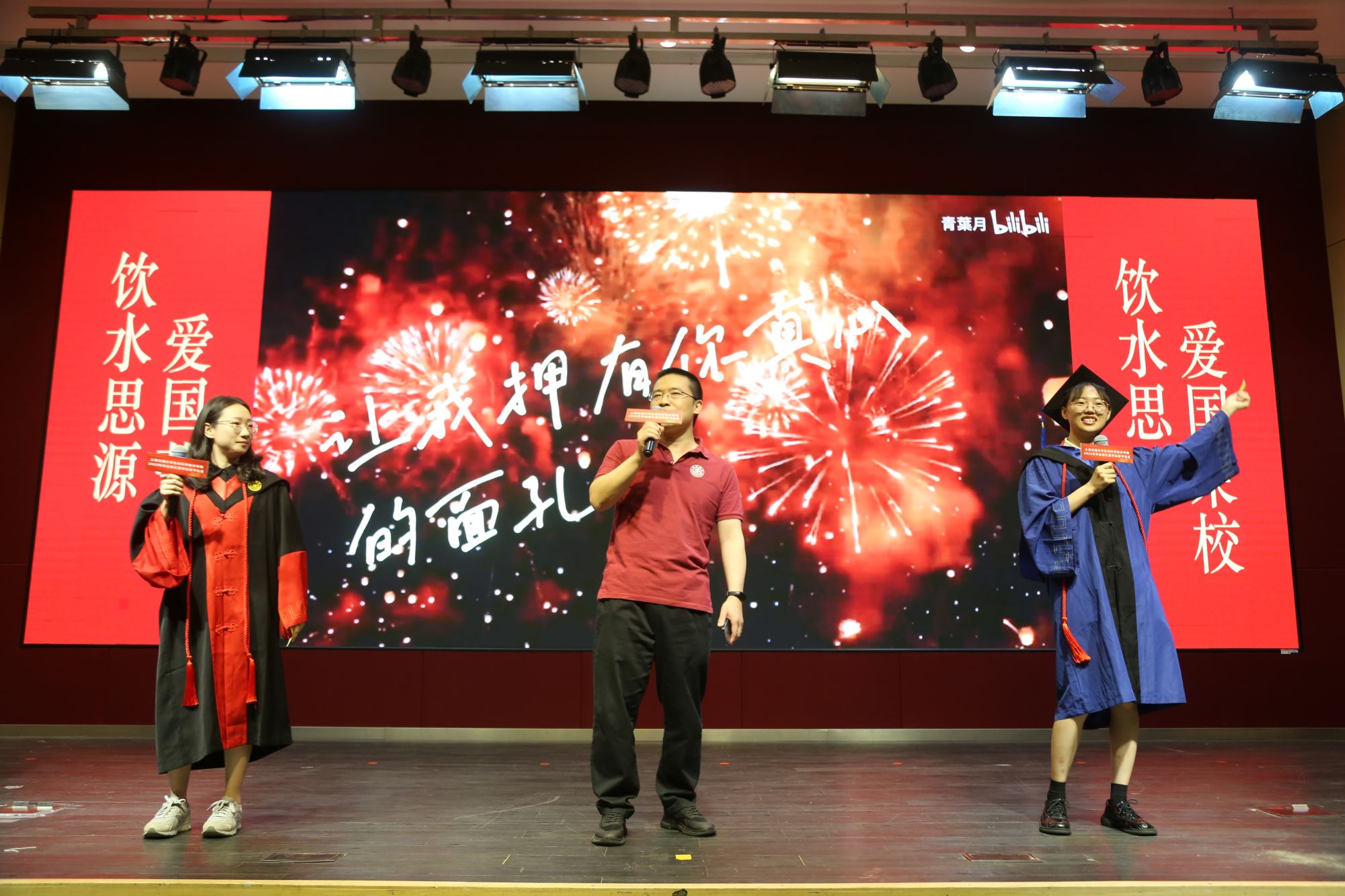 典礼开始前,在2025届毕业纪念视频循环播放营造的温馨氛围中,张萍、徐俊等教师与毕业年级学生共同带来歌曲表演。毕业离别之际,师生同台演唱,共叙师生情谊。