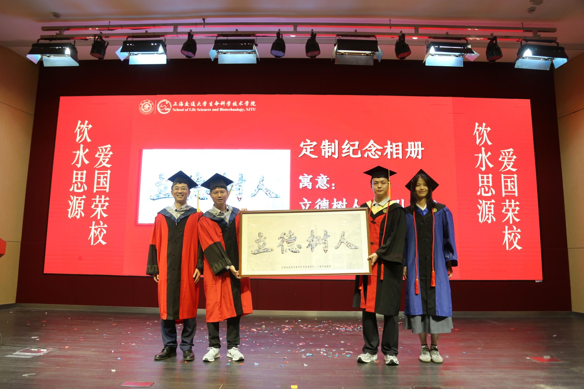 毕业生代表万佳欣、高翔代表全体毕业生向学院赠送毕业礼物,蕴含“立德树人”寓意的纪念品表达了对学院的感恩与美好祝福。张雁、冒巍巍代表学院接受礼物,并回赠定制毕业戒指。