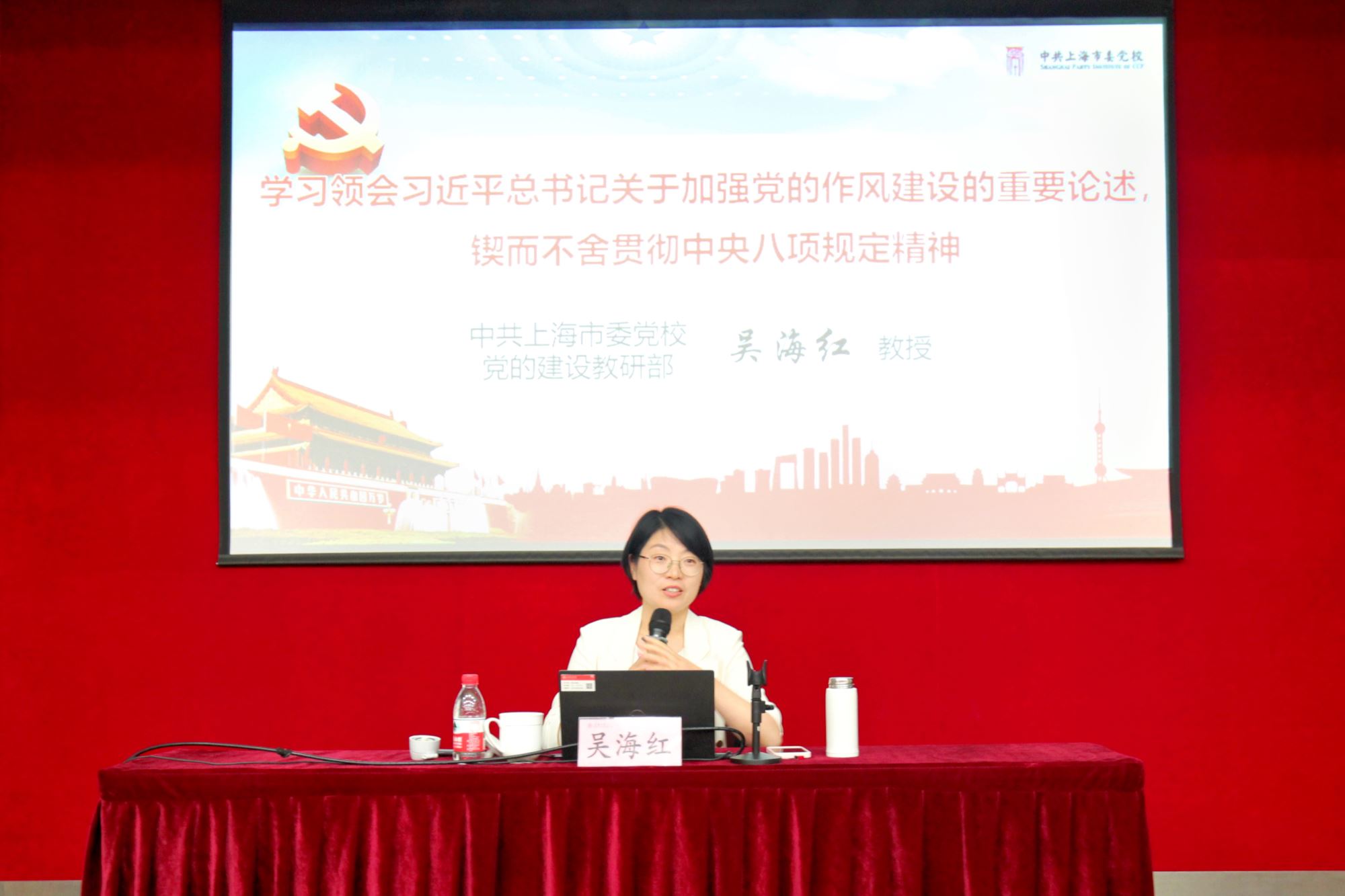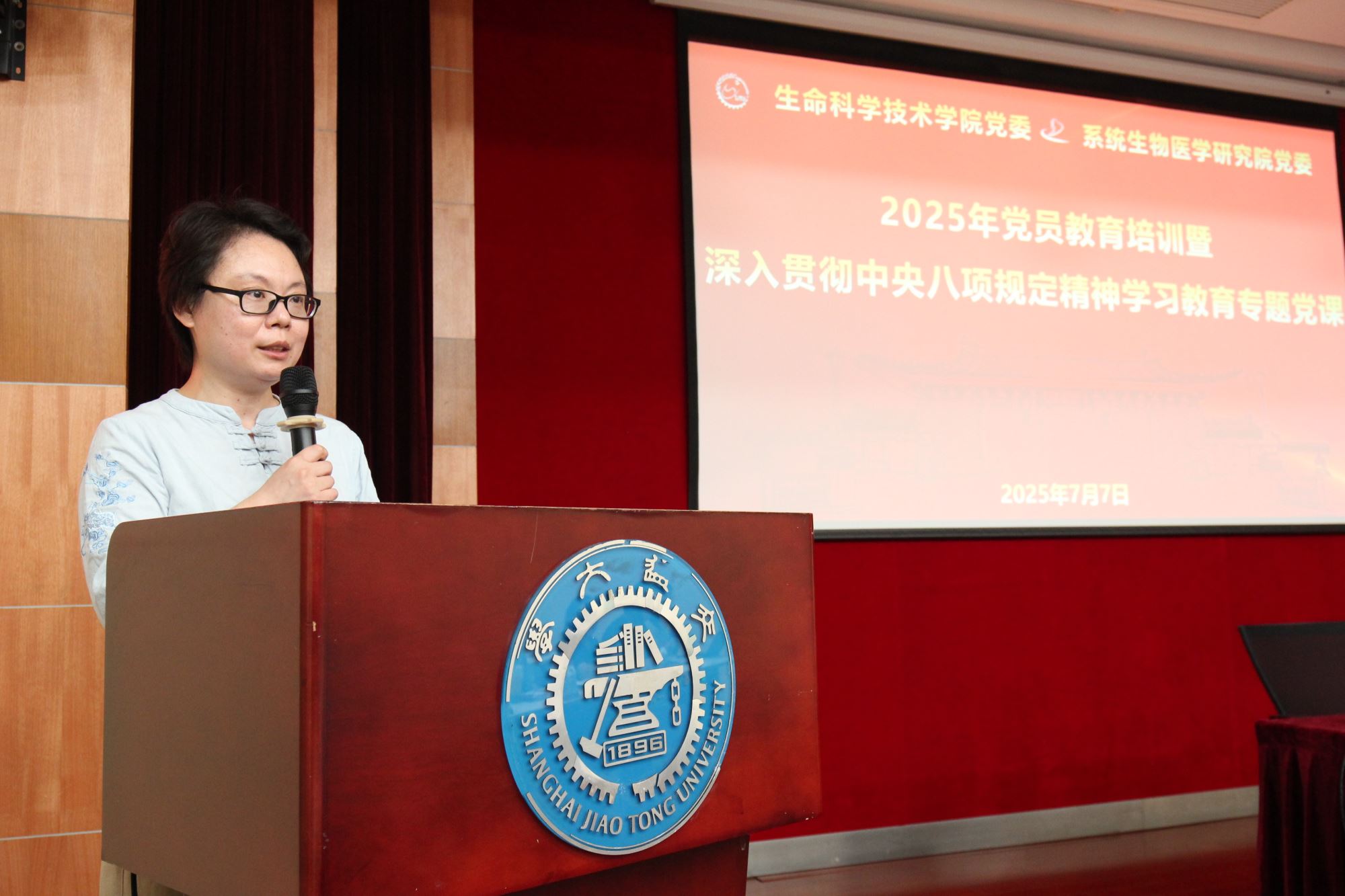 2025年7月7日,350vip8888新葡的京集团联合系统生物医学研究院党员教育培训暨深入贯彻中央八项规定精神学习教育专题党课,邀请上海市委党校党的建设教研部教授吴海红老师做专题辅导报告。两个单位党政领导班子、党委委员、师生党支部书记、师生党员近200人参加学习。活动由350vip8888新葡的京集团党委副书记王鑫主持。