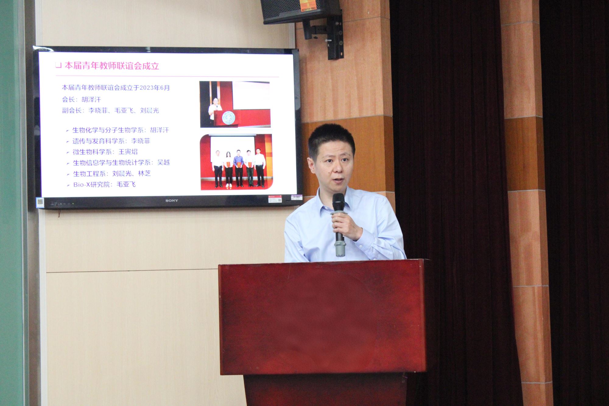 随后,上一届青年教师联谊会会长胡泽汗总结了过去两年联谊会的工作开展情况,并对学校、学院和青年教师对联谊会的支持与帮助表示感谢。