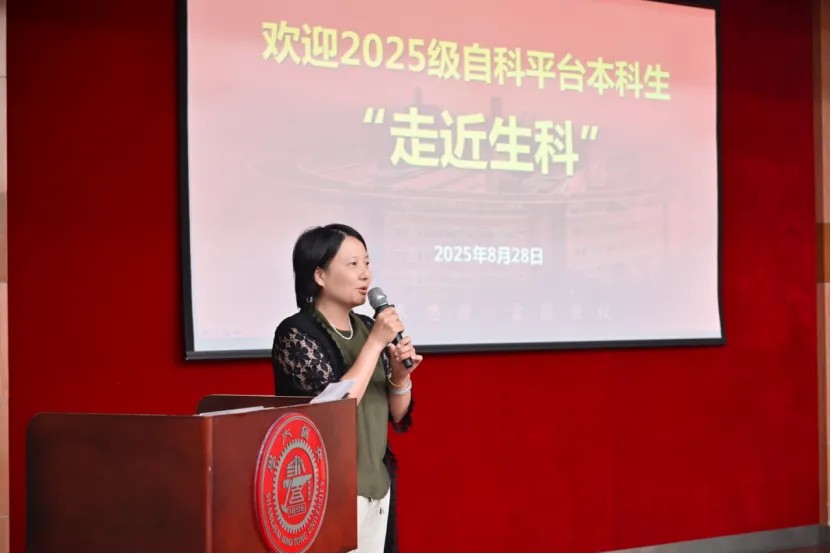 李芳就本科生培养体系及教学管理事务进行了系统介绍。她结合学院与学校的人才培养目标,详细阐述了专业设置、培养方案、选课考试及学业评价等关键内容,并提醒同学们要养成良好的学习习惯,提升自主学习能力。