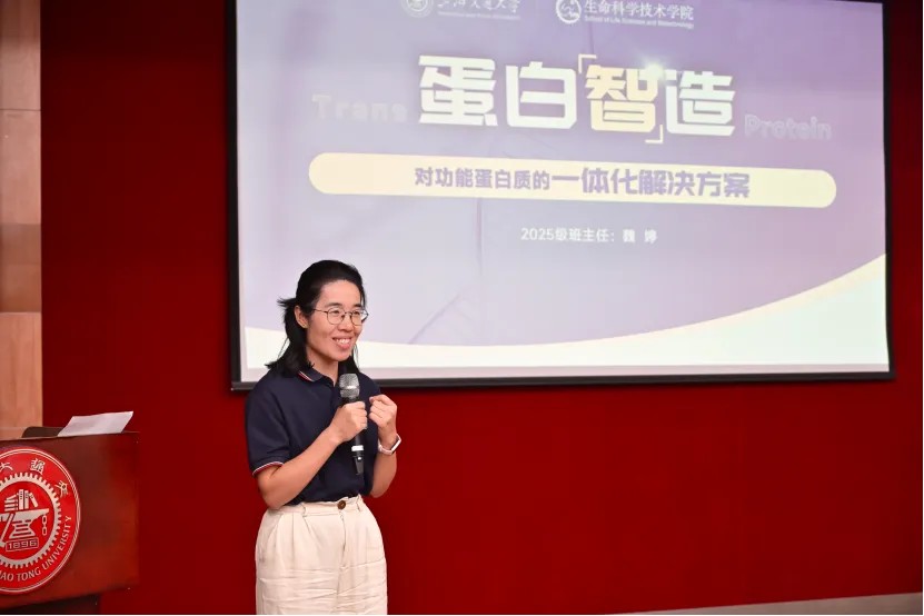 自科平台班主任魏婷以“对功能蛋白质的一体化解决方案”为主题,借助生动案例引入,阐释了AI与生命科学结合的重要意义,引导同学们勇于探索生命世界,在科研之路上持续钻研。