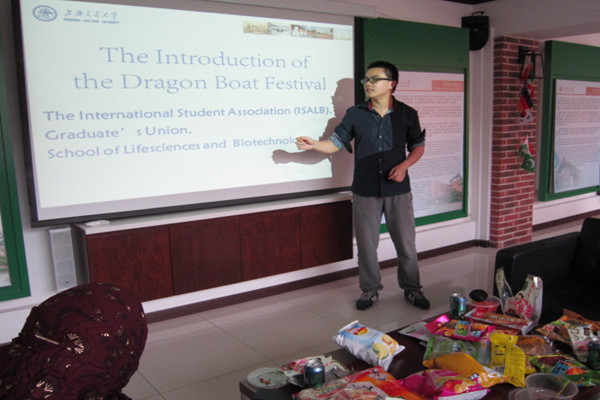 张燕红希望留学生们能够通过参加各种活动更好地展现出自己的风采、展示出自己国家的文化,让中国的老师和同学们领略到不一样的文化魅力。接着,350vip8888新葡的京集团研究生会主席团成员舒磊磊为留学生们介绍了中国的传统节日——端午节。留学生们对粽子很感兴趣,纷纷练习“zongzi”的发音,讨论粽子的食用方法。