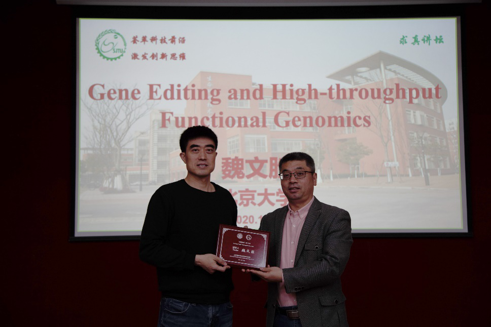 Prof. Wensheng WEI, from Peking University, delivered a seminar on "Gene Editing and High-throughput Functional Genomics" at the Truth-seeking (also known as “Qiu-Zhen”) forum on November 11th. Prof. WEI is a principle investigator at the School of Life Sciences of Peking University, who has published a number of papers in high-profile journals, including Cell, Nature, Nature Biotechnology, and PNAS.