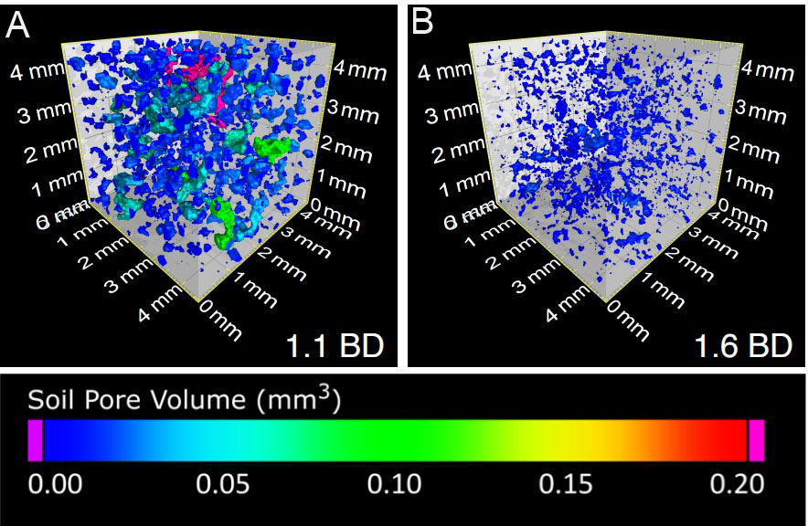 (A) 3D-structure image of soft soil; (B) 3D-structure image of hard soil.