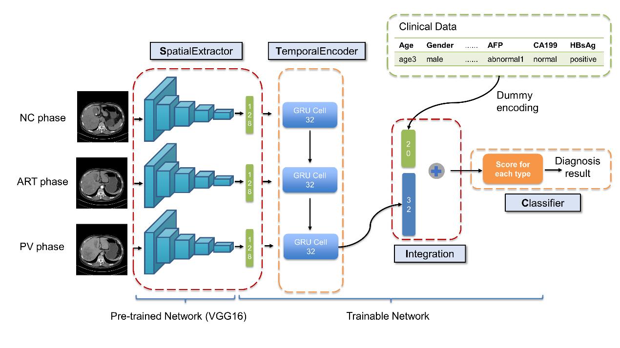 In this study, the researchers proposed a deep learning-based model, which take the advantage of deep convolutional neural network (CNN) and gated recurrent neural network (RNN) to effectively extract and integrate the diagnosis-related radiological and clinical features of patients. The model achieved an accuracy of 72.6% on the test set for differential diagnosis of malignant hepatic tumors, comparable with the diagnostic level of doctors’ consensus (70.8%). With the assistance of the diagnostic model, doctors achieved better performance than doctors’ consensus diagnosis, with an increase of 8.3% in accuracy and 26.9% in sensitivity for ICC diagnosis on average. On the external test set from center 2, the diagnostic model achieved an accuracy of 82.9%, which verify the model’s generalization ability. The model established by Prof. Yu’s Lab can assist doctors to achieve better diagnostic performance, which is expected to serve as an AI assistance system and promote the precise treatment of liver cancer.