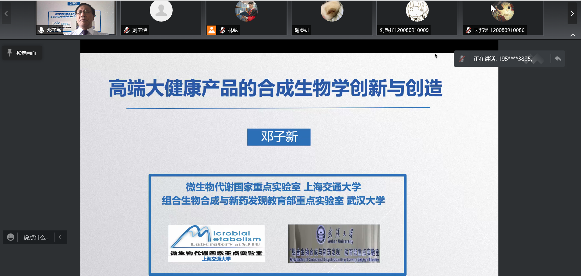 On April 6th, Professor Deng Zixin, a CAS academician, from the School of Life Sciences and Biotechnology (SLSB) gave a lecture titled " Innovation and Production of High-end One Health Synthetic Biology Products " to more than 200 undergraduate and postgraduate students from SLSB.