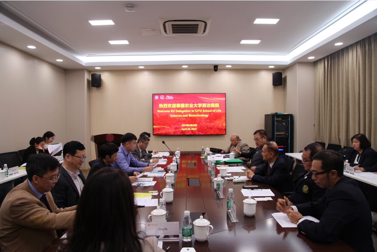 On the morning of April 28, 2023, the delegation of President of Kasetsart University (KU) Chongrak Wachrinrat visited School of Life Sciences and Biotechnology (SLSB), Shanghai Jiao Tong University (SJTU).