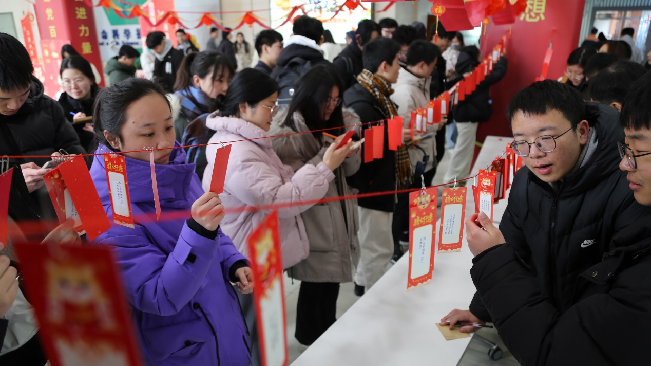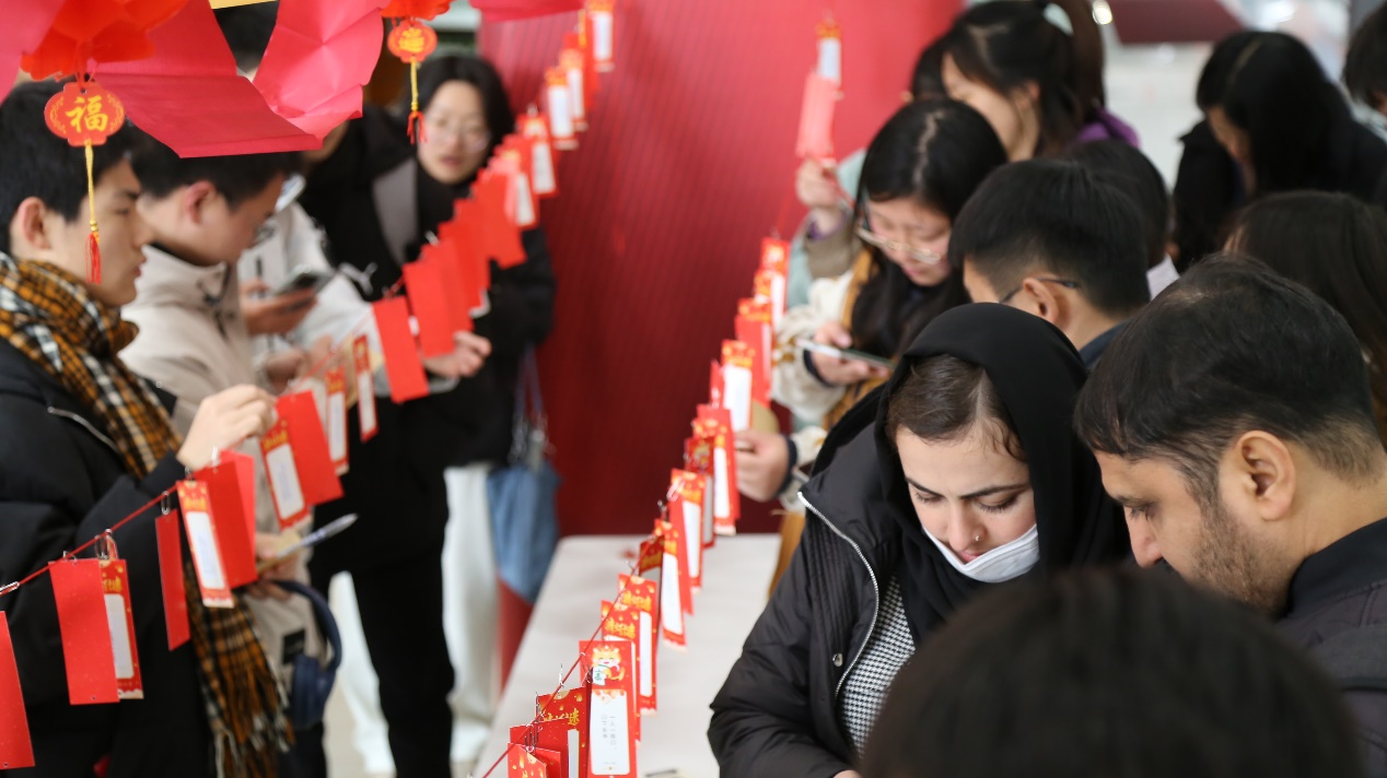 The lanterns featuring designs ranging from dragons and flowers to the auspicious Chinese character for "fortune", made through the process of hand-drawing, gluing, threading ropes and installing lamps.  Each lantern not only expressed the hopes and blessings of the college community for a prosperous future but also showcased the beauty of traditional culture. Tailored to the features of the biological discipline, solving lantern riddles that incorporate professional terms like "experimental instruments" and "experimental techniques" proves both enjoyable and educational. Teachers and students engage in lively discussions and friendly competition, fostering an energetic atmosphere during the event.
