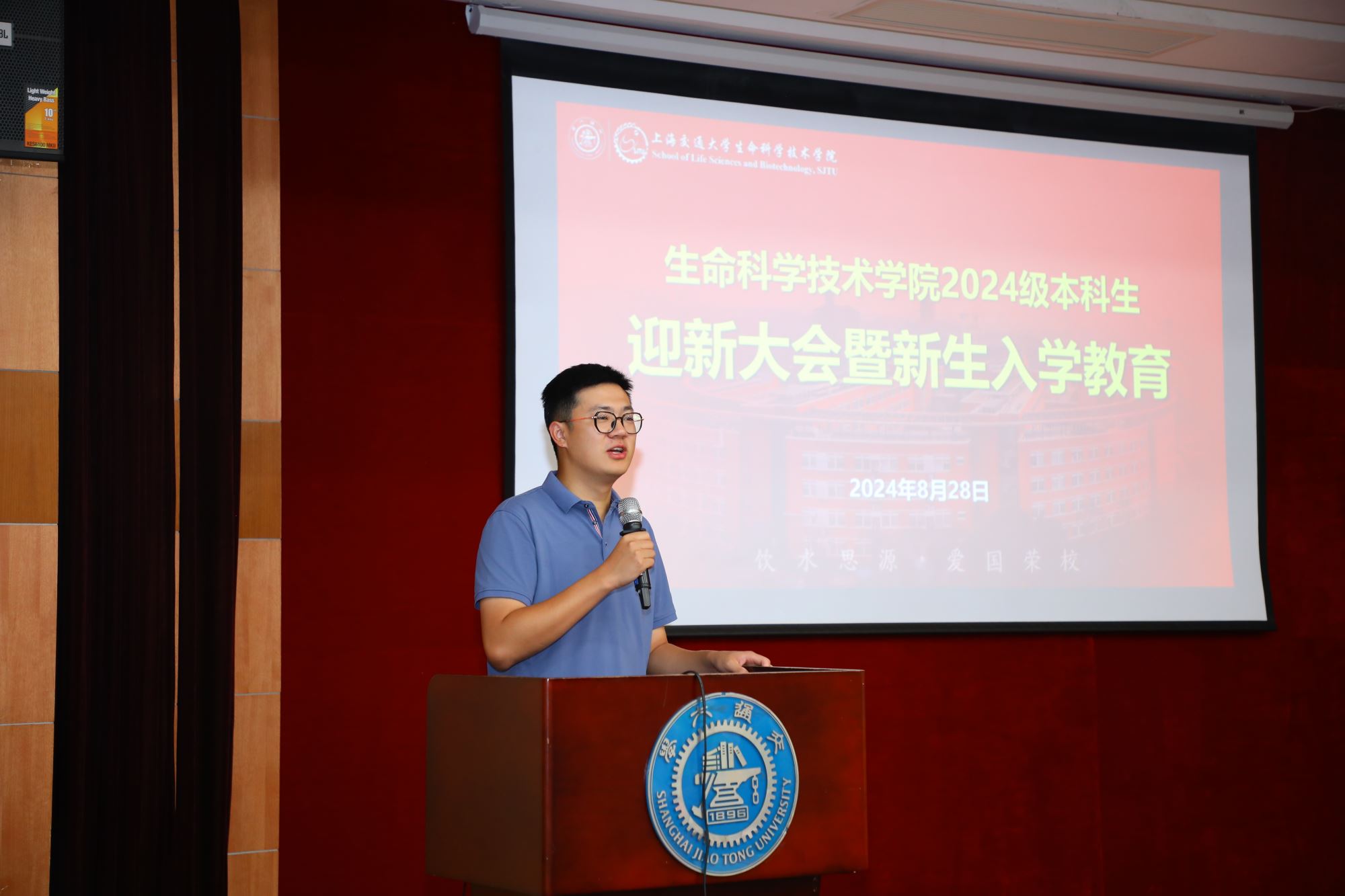 On the morning of August 28th, the School of Life Science and Technology held its welcoming ceremony and orientation for the Class of 2024 undergraduate freshmen. The event was attended by Zhang Yanhong, Deputy Secretary of the Party Committee of the School, class advisors Qin Boyang, Lin Zhi, Li Lei, and Yu Xiang, Liu Yanfang, the Director of the Student Office, and Li Fang, the Deputy Director (acting) of the Academic Affairs Office. All freshmen from the Class of 2024 were present at the meeting, which was hosted by Chen Xingyu, the ideological and political education teacher for the freshman year.