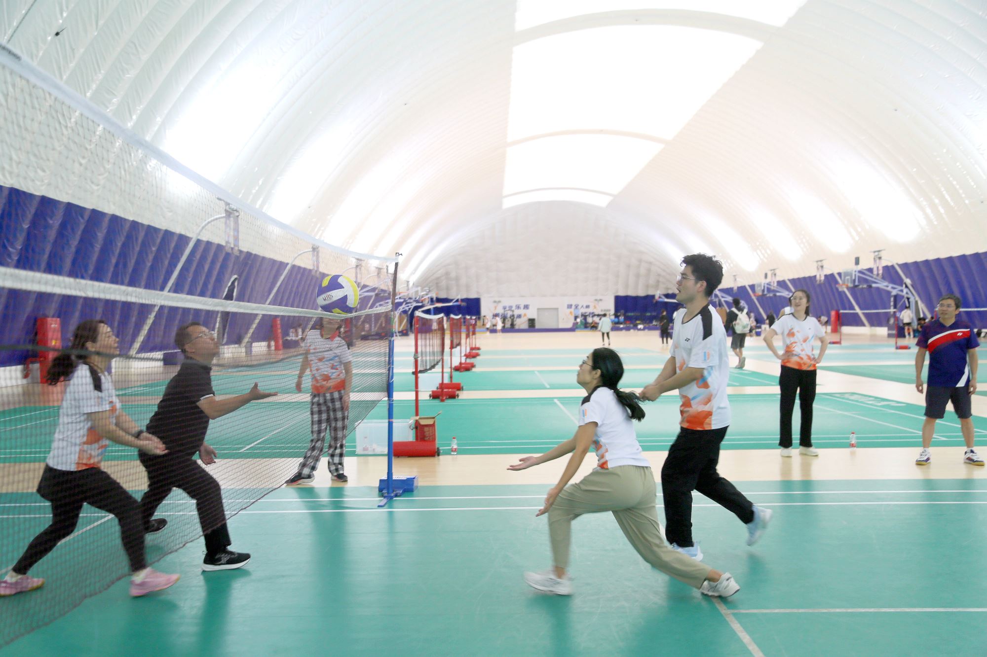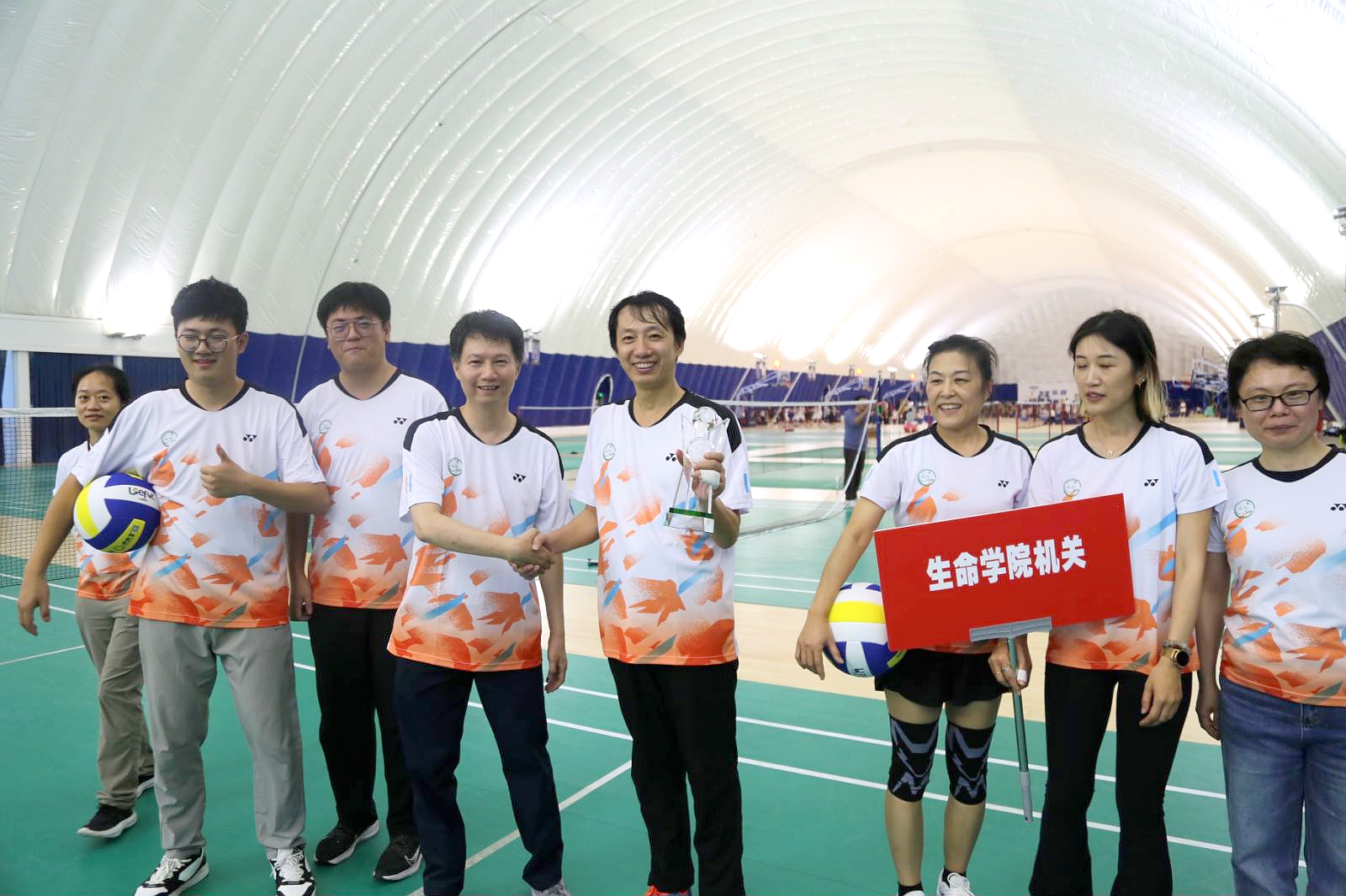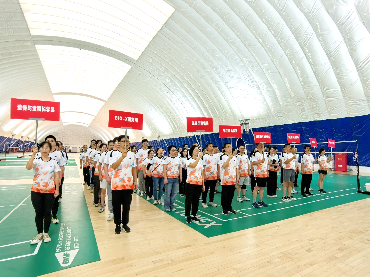 In order to effectively promote the in-depth development of national fitness activities and enrich the cultural life of faculty and staff, the 8th "Champion Cup" Balloon Volleyball Competition, hosted by the Labor Union of the School of Life Science and Technology, kicked off on October 16 at the Air-Supported Dome Sports Center on the Minhang Campus. Zhang Yan, Dean of the School, and Gu Jianping, Secretary of the Party Committee, attended the event.