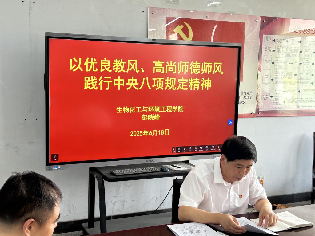 本次党课以《以优良教风、高尚师德师风践行中央八项规定精神》为题,由党总支书记彭晓峰主讲。课程结合高校教育工作实际,深入剖析了教风、师德师风与党风廉政建设的内在联系,要求全体党员教师将中央八项规定精神融入日常教学科研,恪守职业底线,弘扬高尚师德。