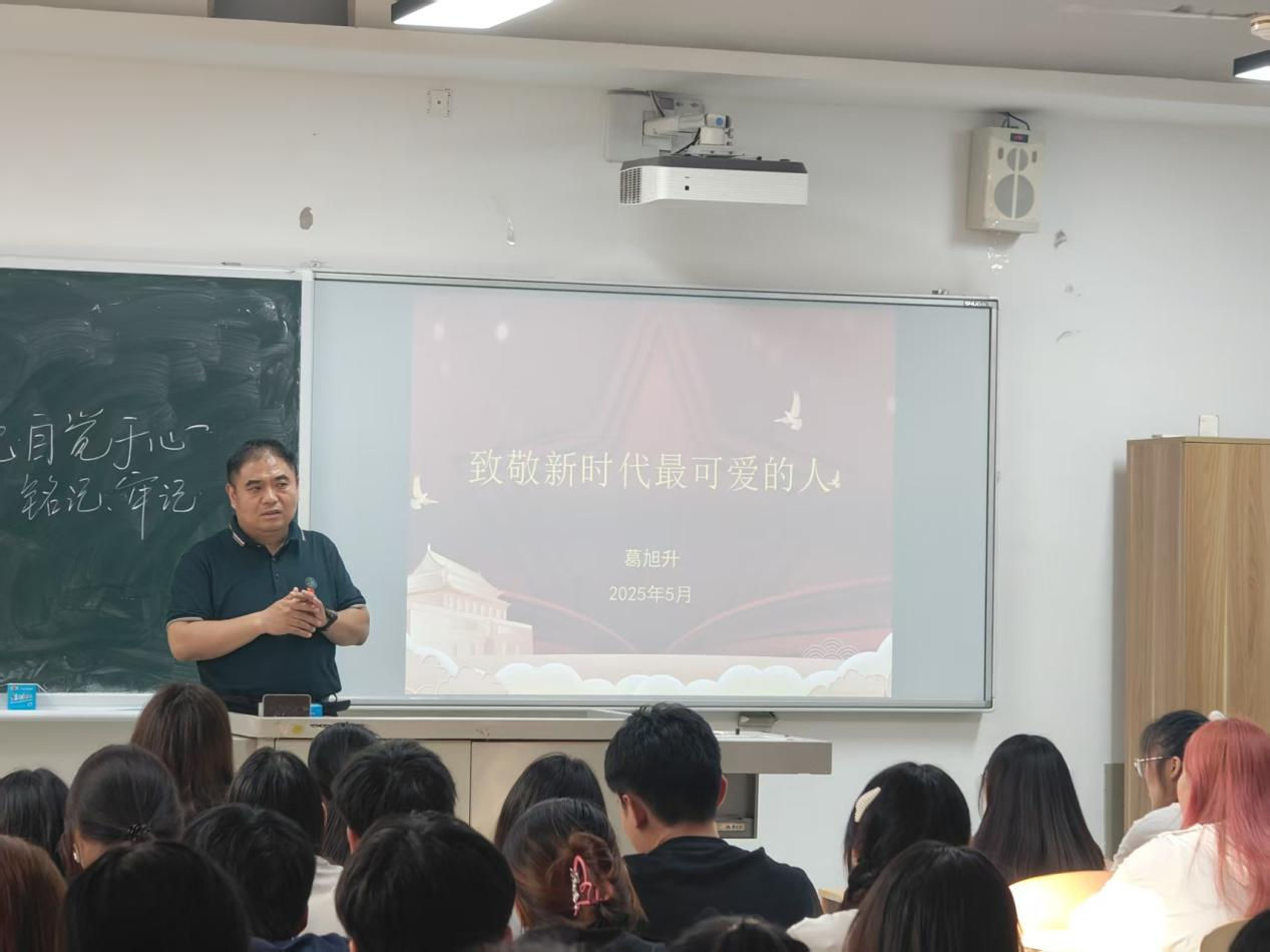 2025年5月28日下午,院长葛旭升以“致敬新时代最可爱的人”为题,在理科楼203教室为2024级化学专业学生讲授了一堂生动的专题党课。党课深刻阐释了“新时代最可爱的人”的丰富内涵与时代价值,引导同学们坚定理想信念,传承红色基因,努力成长为担当民族复兴大任的时代新人。