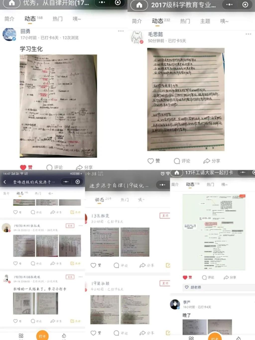 值此特殊时期,同学们都处于各自的家中学习,无论是上课时间还是课后复习时间,都无法较为顺畅的与其他师生交流答疑,而云打卡活动一是营造了线上学习交流的氛围,二是可以督促同学们养成良好的学习习惯。大家纷纷晒出自己的笔记,既能实现知识的共享,又能达到互相学习、共同进步的效果,对加强线上课堂学风建设起到了良好的推动作用。