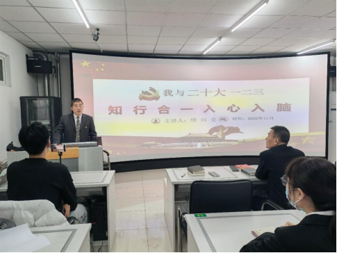 学生党支部按照党总支统一安排部署在虚拟仿真实验室召开了二十大精神集体学习,同样采用领学、谈体会的形式进行,党总支副书记续向党集体学习后作了“我与二十大”主题党课,辅导学生党员如何学习二十大。