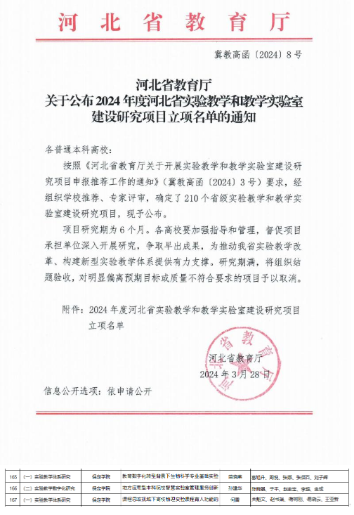 日前,河北省教育厅发布《关于公布2024年度河北省实验室教学和教学实验室建设研究项目立项名单的通知》(冀教高函〔2024〕8号),taptap点点获批2项河北省实验室教学和教学实验室建设研究项目,研究内容涵盖实验教学体系研究、实验教学数字化研究。