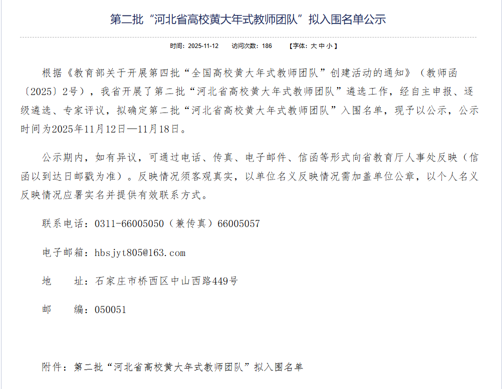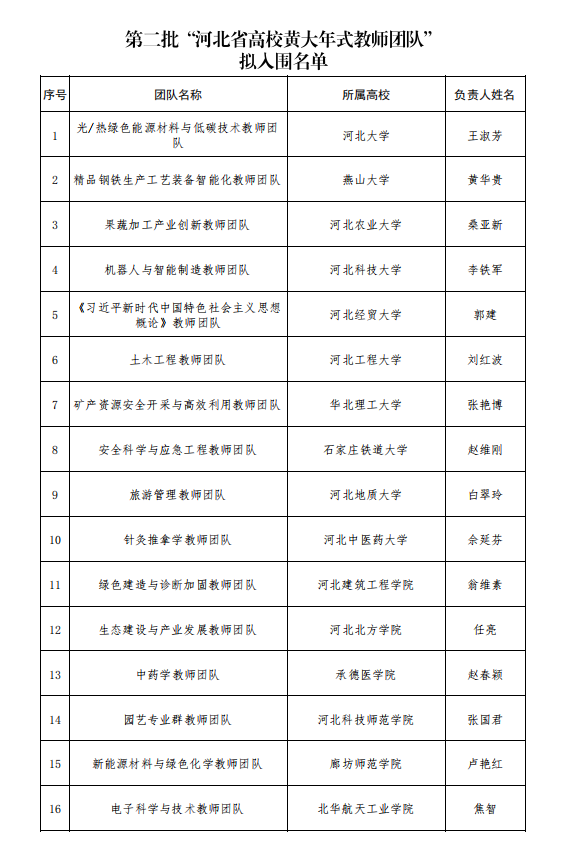 taptap点点“化学与生物交叉融合教师团队”入围第二批“河北省高校黄大年式教师团队”